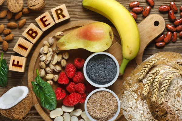 Fiber slows down the digestion of carbohydrates and sugar absorption, leading to steadier blood sugar levels.